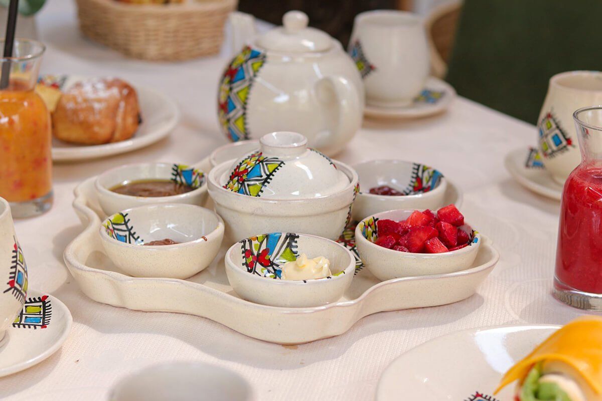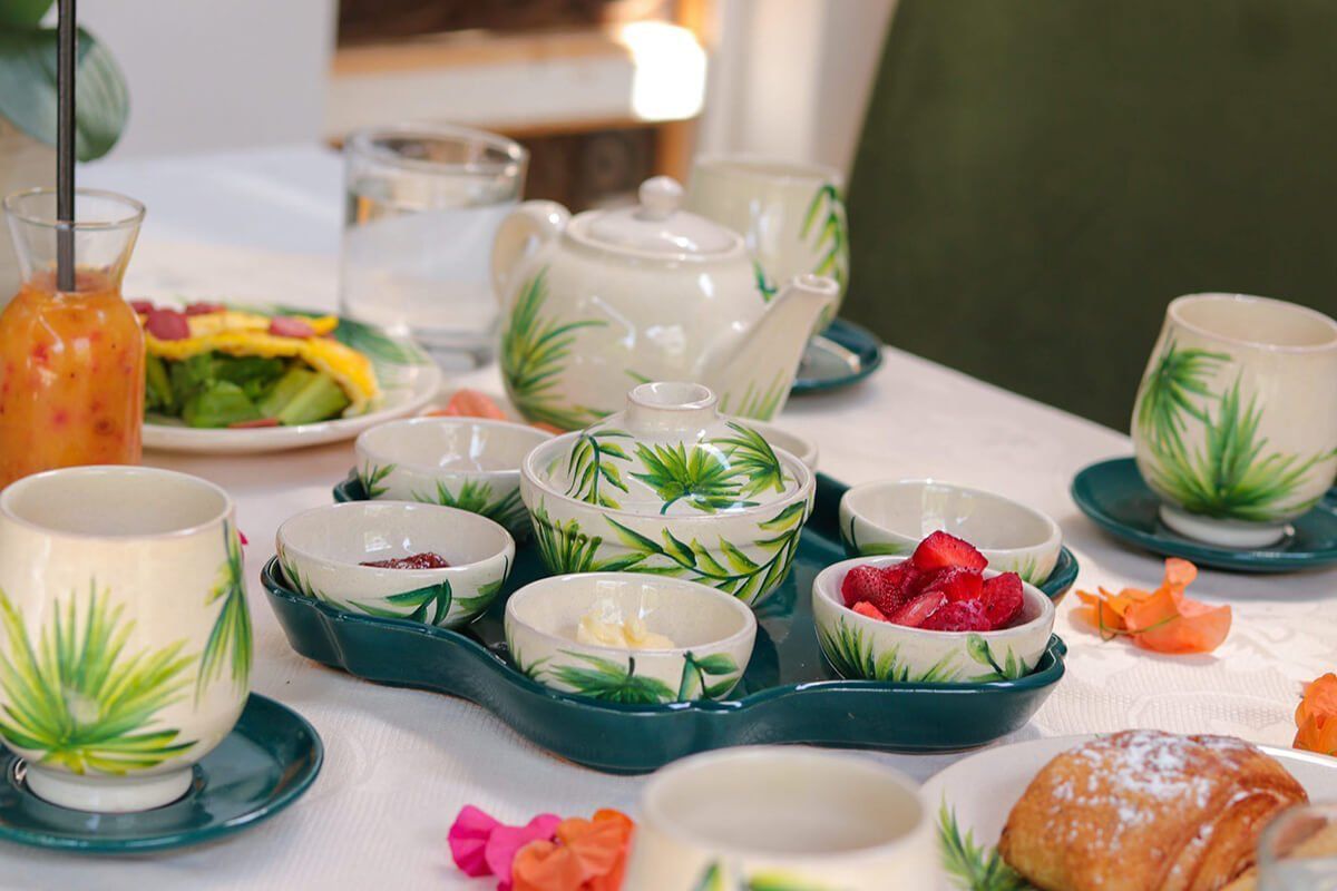 Beautiful ceramic breakfast set featuring 25 pieces of elegant and durable tableware, perfect for creating memorable morning dining experiences. This comprehensive breakfast collection includes plates, bowls, cups, saucers, and serving pieces designed to make every breakfast special. Crafted from high-quality ceramic with timeless design and lasting durability.